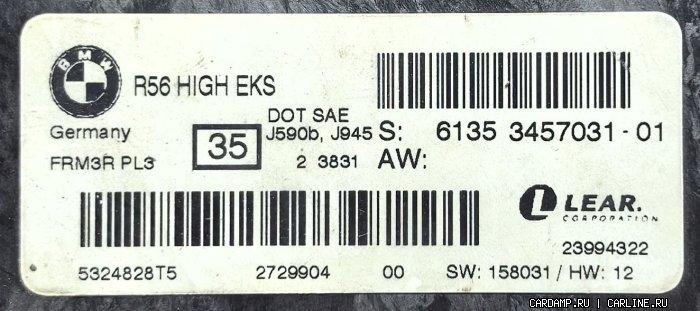 | Номер модуля: | 6135 3457031-01 R56 HIGH EKS SW: 158031 / HW: 12 |